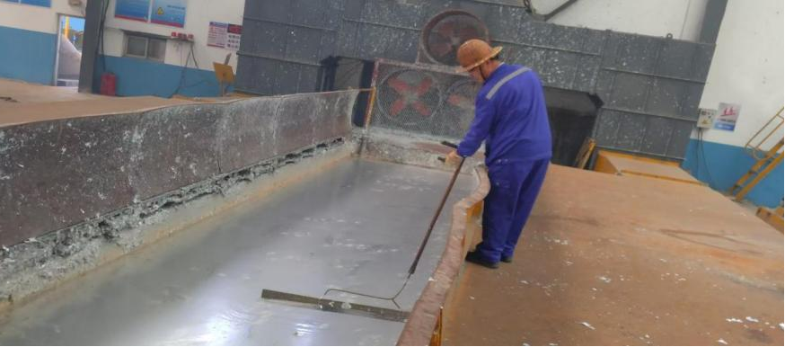 图:商文杰在查看锌液使用情况,及时添加合金进行调配,解决产品在实际生产工程中的镀锌质量问题